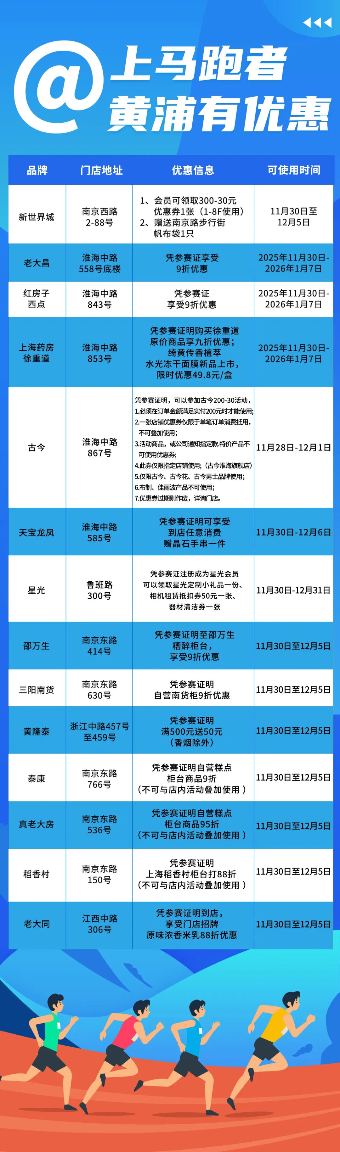 @上马跑者,黄浦区新闻办介绍,黄浦区携手多家商户,为跑者打造一场运动与优惠交融的福利盛宴。