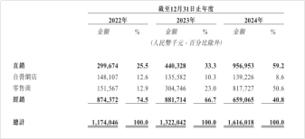 一直以来,溜溜果园非常依赖于经销渠道。招股书显示,截至2024年12月31日,溜溜果园拥有覆盖全国34个省市的经销网络,拥有1396家经销商。溜溜果园2022-2024年经销渠道的收入金额占比分别高达74.5%、66.7%、40.8%。